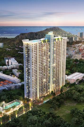 34 storey residential building comprise of 1 residential building, parking building 6 Floor and 1 community mall with total area of 75,000 sq.m. located at Tepprasit Road, Pattaya, Chonburi